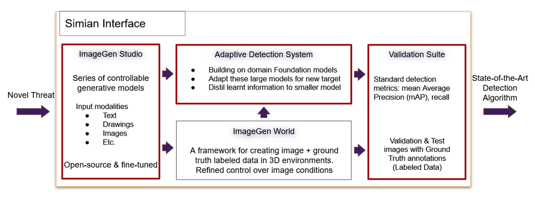 A prototype of a portable end-to-end solution has been developed. The prototype hardware includes a server with network capabilities, allowing laptops to connect via LAN. The laptops or client machines then have access to the prototype web application "ImageGen Studio". ImageGen Studio enables users to easily generate images of a "novel threat" under various conditions and in different environments.